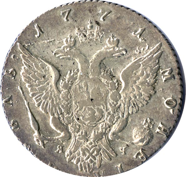 Екатерина II, отменив удвоение медной стопы, сохраняет снижение серебряной. Указом от 30 марта 1764 года вводится 72/96 проба для разменной монеты.