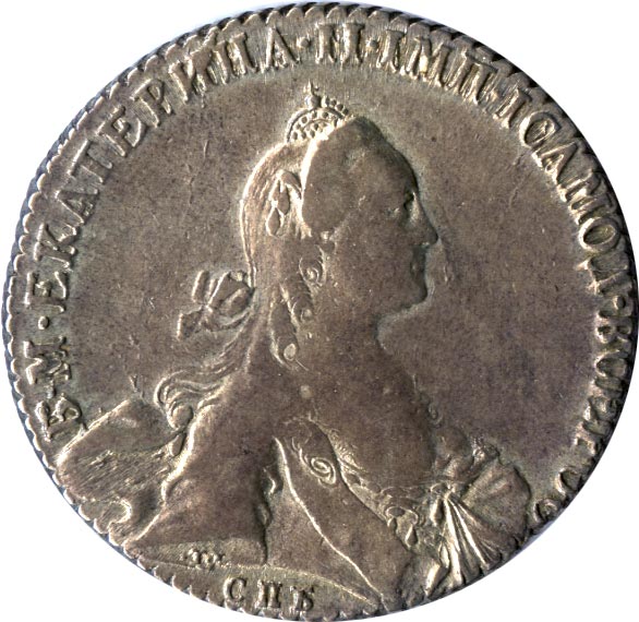 Лицевая сторона — портрет императрицы и надпись «Б М ЕКАТЕРИНА II IМП I САМОД ВСЕРОС», оборотная — двуглавый орел и надпись «МОНЕТА РУБЛЬ» и дата. Проба — 750, нормативный вес — 24 грамма, гурт — шнур.