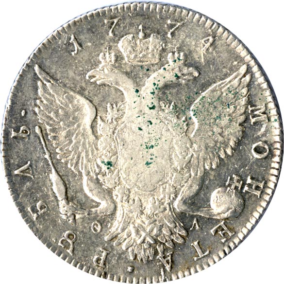 Большая часть рублей Петра III прямо перечеканиваются в новые, хотя официально такого указания не было. Портрет «с шарфом на шее» един для Московского и Петербургского дворов, но петербургский орел отличается от московского. Портреты на московских рублях 1762 года и большинстве рублей 1768 года схожи с петербургскими. С 1768 года появляется новый московский тип.