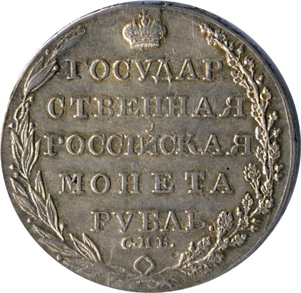 В первые годы правления Александра I серебряные монеты печатаются по прежней норме на Банковском дворе. После многочисленных проб нового оформления (в том числе с портретом в стиле римских императоров) указом от 31 августа 1801 года на их лицевую сторону помещается гербовый орел в кольце, а на оборотную — окруженная венком из лавровой и дубовой ветвей надпись «ГОСУДАРСТВЕННАЯ РОССIЙСКАЯ МОНЕТА».