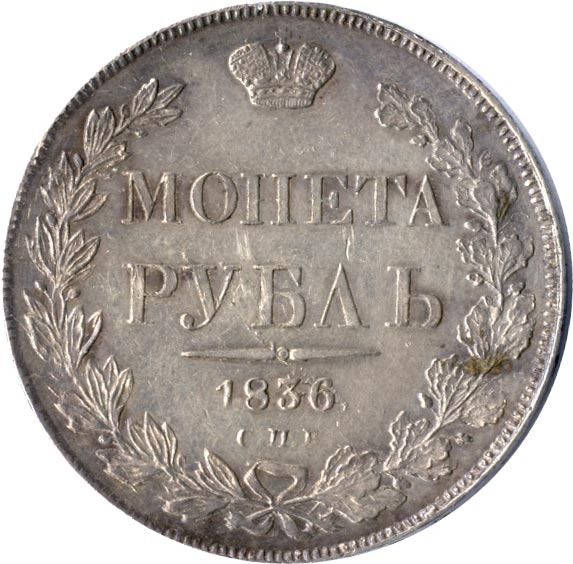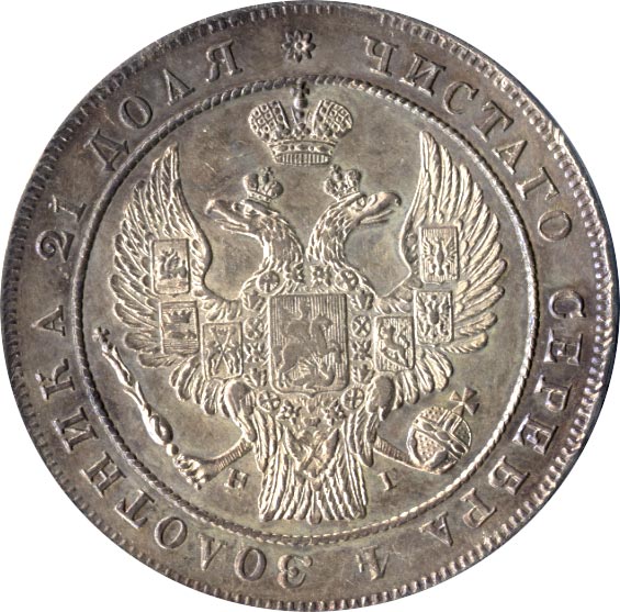 В январе 1830 года Николай I дает министру финансов Е. Ф. Канкрину устное указание «о сделании на золотых и серебряных монетах орла как на платиновых». На новом гербе крылья орла подняты, на них размещены шесть местных гербов — казанский, астраханский, сибирский, польский, херсонесский и финляндский. На груди орла — московский герб, на головах — короны. С 1832 года заодно с орлом изменяются и композиции обеих сторон монет: на лицевой стороне содержание чистого серебра в монете теперь обозначает круговая надпись, слово МОНЕТА на оборотной подчеркивает нарицательную стоимость, отличая полновесное денежное средство от рубля ассигнациями (нужно помнить, что доставшаяся Николаю в наследство от трех прежних правлений масса обесцененных бумажных денег является острой экономической проблемой. Правительство Николая удерживает объем ассигнаций строго на одном уровне, не прибегая к дополнительным эмиссиям; курс рубля ассигнациями колеблется вокруг 35 копеек).