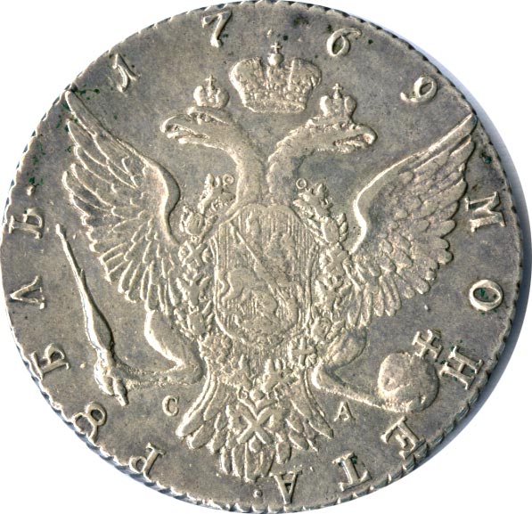 Большая часть рублей Петра III прямо перечеканиваются в новые, хотя официально такого указания не было. Портрет «с шарфом на шее» един для Московского и Петербургского дворов, но петербургский орел отличается от московского. Портреты на московских рублях 1762 года и большинстве рублей 1768 года схожи с петербургскими. С 1768 года появляется новый московский тип.