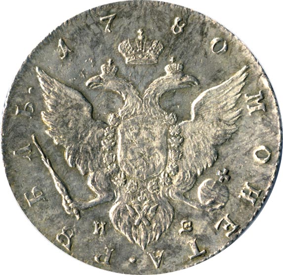 Тимофей Иванов выполняет задание, и 10 января 1777 года пробы утверждаются. Новые монеты выполнены в плоском рельефе, а в изображении орла ощутимо влияние гедлингеровского типа. Портрет незначительно изменяется в 1783 году — на нем императрица выглядит несколько старше. Начиная с этого типа, серебряные монеты выпускаются только в Петербурге.