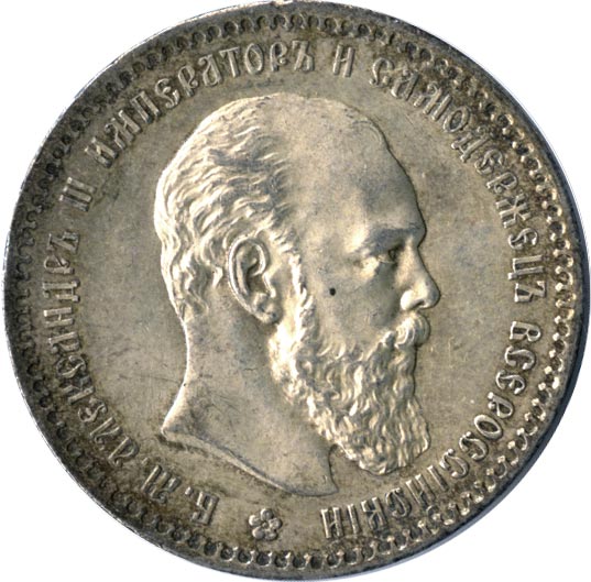 Лицевая сторона — портрет Александра III в круговой надписи «Б.М.АЛЕКСАНДРЪ III ИМПЕРАТОРЪ И САМОДЕРЖЕЦЪ ВСЕРОССIЙСКIЙ», оборотная — двуглавый орел, обозначение номинала (рубль) и дата.