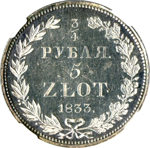 3/4 рубля — 5 злотых 1833-1841 годов