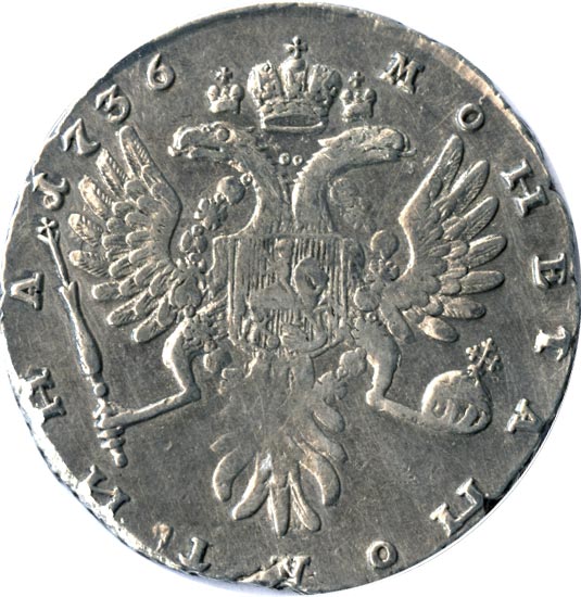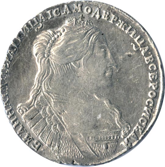 Полтина 1734-1737 годов «Со скошенным лбом»