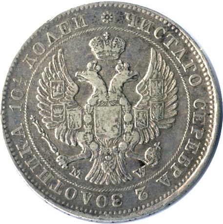 С 1842 года изготовление общеимперских монет начинается на монетном дворе в Варшаве (знак MW), но ежегодно и массово — только рублей и полтин.