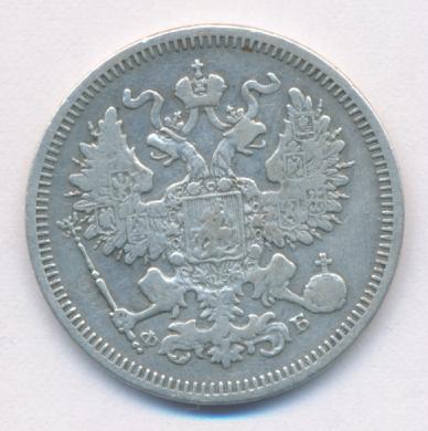 Лицевая сторона — гербовый орел, оборотная —обозначение номинала (20 копеекъ), окруженное венком из лавровой и дубовой ветвей и дата.