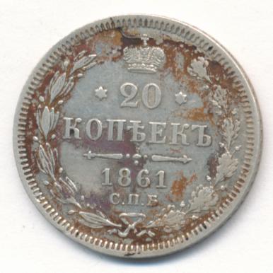 В 1861 году из-за перегруженности Петербургского двора заказы на чеканку части 20, 15 и 10 копеек размещаются на Парижском и Страсбургском монетных дворах. На этих монетах тот же знак двора СПБ, но отсутствует знак минцмейстера.