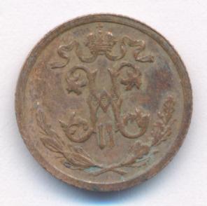 Лицевая сторона — вензель Александра II в венке из лавровой и дубовой ветвей; оборотная — обозначение номинала (1/2 копейки) и дата. Нормативный вес — 1,64 грамма, гурт рубчатый.