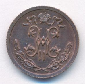 Лицевая сторона — вензель Александра II в венке из лавровой и дубовой ветвей; оборотная — обозначение номинала (1/2 копейки) и дата. Нормативный вес — 1,64 грамма, гурт рубчатый.
