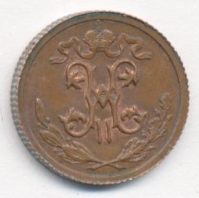Лицевая сторона — вензель Александра II в венке из лавровой и дубовой ветвей; оборотная — обозначение номинала (1/2 копейки) и дата. Нормативный вес — 1,64 грамма, гурт рубчатый.