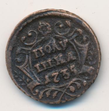 С 1730 года, как и 30 лет назад, медь возвращает себе статус разменных долей серебряной копейки — печатаются только денги и полушки. Указ от 22 декабря 1730 года регламентирует их выпуск на 10 рублей из пуда меди. Петровские копейки 20-рублевой стопы перечеканиваются в денги, а копейки Петра II 40-рублевой стопы — в полушки.