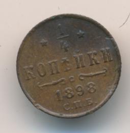 Лицевая сторона — вензель Александра II в венке из лавровой и дубовой ветвей; оборотная — обозначение номинала (1/4 копейки) и дата. Нормативный вес — 0,82 грамма, гурт рубчатый.