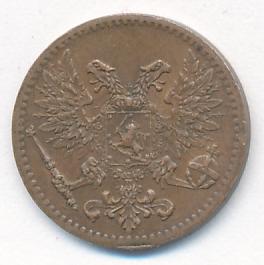 Лицевая сторона — вензель Александра II, оборотная — номинал (1 PENNIA) и дата. Нормативный вес — 1,28 грамма, гурт гладкий.