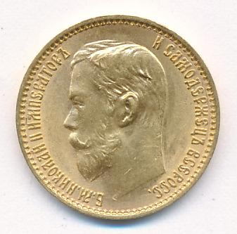 Лицевая сторона — портрет Николая II и надпись «Б.М. НИКОЛАЙ II ИМПЕРАТОРЪ И САМОДЕРЖЕЦЪ ВСЕРОСС»», оборотная — двуглавый орел, обозначение номинала (5 рублей) и дата.