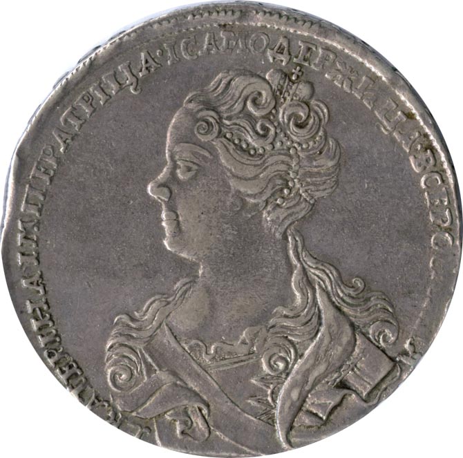 Гурт на монетах Кадашевского двора - «россискоi рубль ея i в (императорского величества) московского двора», гурт на петербургских монетах — узор или шнур. Легенда лицевой стороны - «Екатерина императрица и самодержица всероссийская», оборотной - «Монета новая цена рубль» и дата арабскими цифрами. Проба -729, нормативный вес — 28,44 грамма.