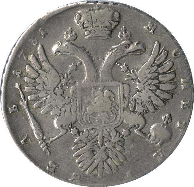 Выделяют два типа по направлению линии корсажа; различаются особенностями прически и убранства. На лицевой стороне портрет императрицы и круговая надпись «Б М (божией милостью) анна императрица и самодержица всеросиская», на оборотной стороне двуглавый орел и надпись «монета рубль» и дата.