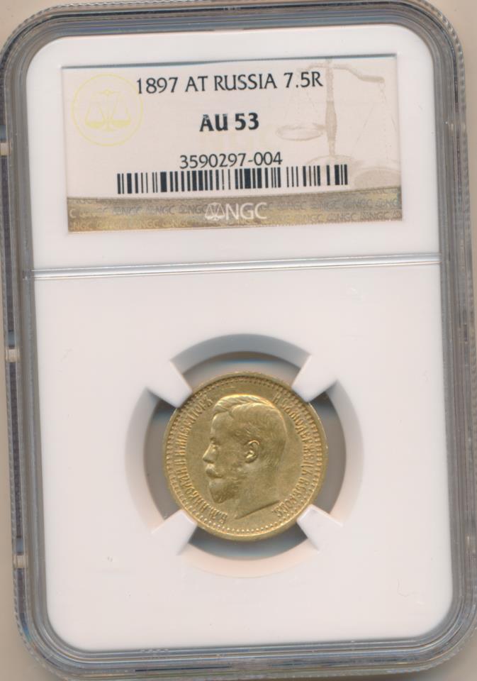Закон от 3 января 1897 года «О чеканке и выпуске в обращение золотых монет», оставляя золотую монету без всякого изменения в содержании чистого золота, пробе, весе и размерах, устанавливает обозначение на полуимпериалах цены 7 рублей 50 копеек. См. статью "Просто, как все гениальное" на сайте "Конрос".