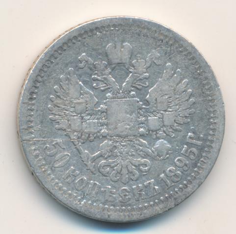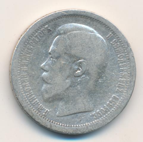 Лицевая сторона — портрет Николая II в круговой надписи «Б.М. НИКОЛАЙ II ИМПЕРАТОРЪ И САМОДЕРЖЕЦЪ ВСЕРОСС», оборотная — двуглавый орел, обозначение номинала (50 копеекъ) и дата.