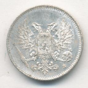 Лицевая сторона — российский двуглавый орел с гербом Великого княжества Финляндского на груди, оборотная — номинал и дата в венке из дубовых листьев. Проба — 750, нормативный вес — 1,27 грамма, гурт рубчатый.