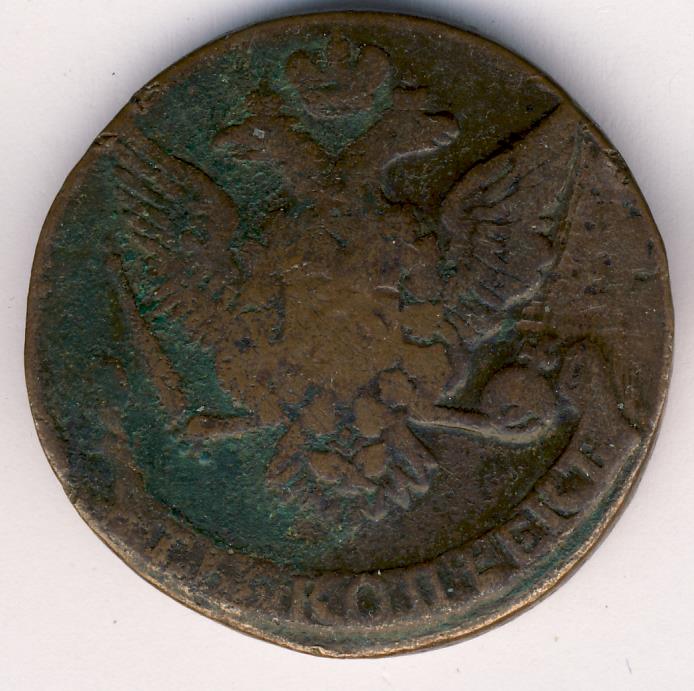 Сложный симметричный вензель оборотной стороны («связаное имя Ея Императорскаго Величества под Императорскою короною между лавровых ветвей, а по сторонам год») по одной из версий дало название «решка», то есть решето (при игре в орлянку).