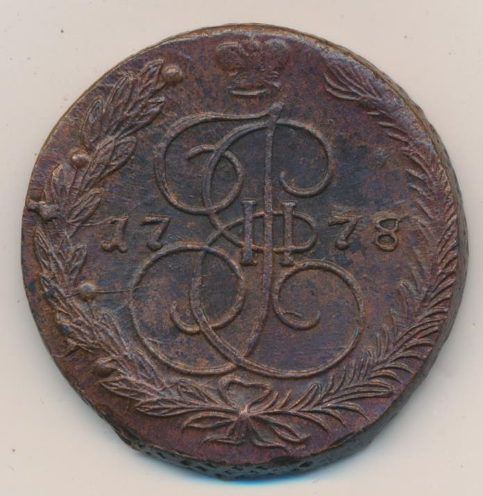 Лицевая сторона — двуглавый орел (выделяют 17 типов орла) и обозначение номинала (пять копеекъ), оборотная — вензель Екатерины II и дата. Нормативный вес — 51,19 грамма, гурт — сетка или шнур.