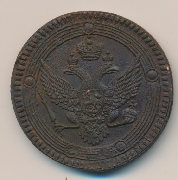 В первое десятилетие правления Александра I медным монетам возвращается принятый при Екатерине II ряд номиналов. Все они оформлены единообразно: на лицевой стороне — двуглавый орел, на оборотной — номинал и дата. Обе стороны обрамлены концентрическими линейными кружками, номинал дополнительно продублирован крупными счетными точками.