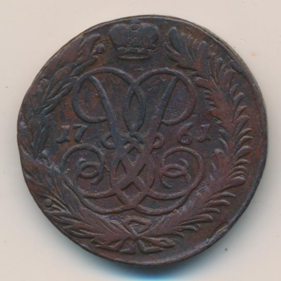 Лицевая сторона — Георгий Победоносец и обозначение номинала (две копейки) в картуше, оборотная — сложный симметричный вензель Елизаветы Петровны и дата. Нормативный вес — 20,48 грамма.