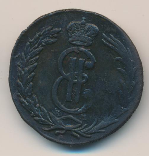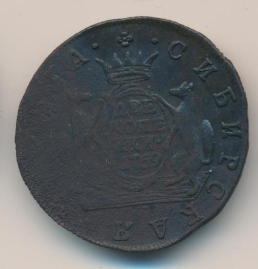 Лицевая сторона - два соболя поддерживают щит с обозначением номинала (две копейки) под короной, надпись «СИБИРСКАЯ МОНЕТА». Оборотная — вензель Екатерины II в венке из пальмовой и лавровой ветвей. Гурт — надпись «колыванская медь» или шнур. Вес — 13,10 грамма.