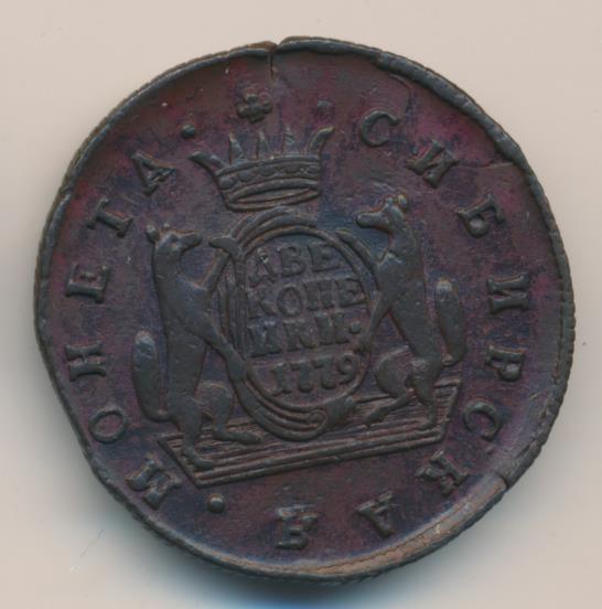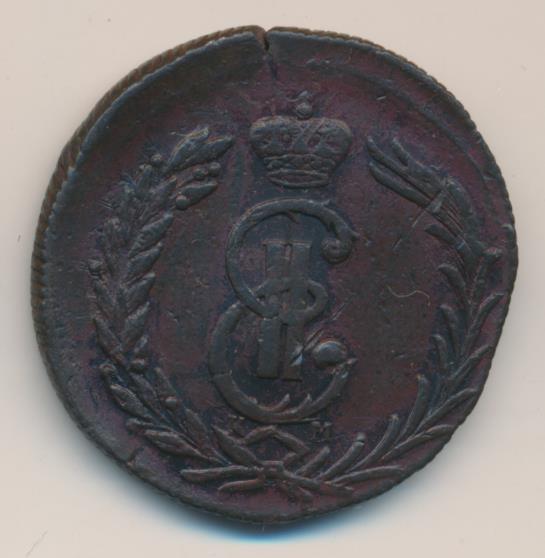 Лицевая сторона - два соболя поддерживают щит с обозначением номинала (две копейки) под короной, надпись «СИБИРСКАЯ МОНЕТА». Оборотная — вензель Екатерины II в венке из пальмовой и лавровой ветвей. Гурт — надпись «колыванская медь» или шнур. Вес — 13,10 грамма.