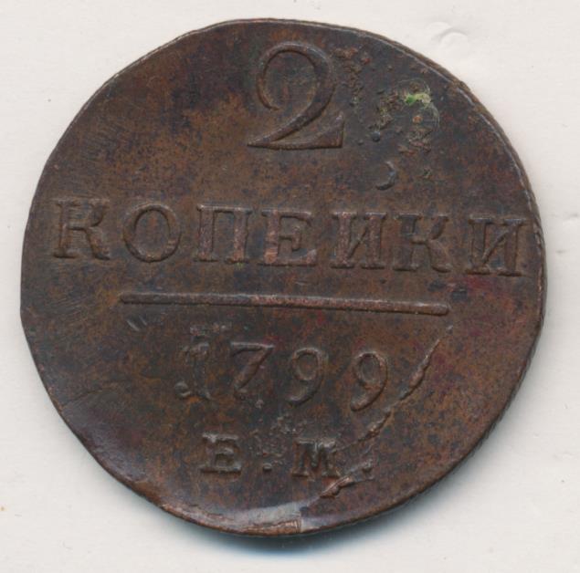 Лицевая сторона — вензель Павла I под короной, оборотная — номинал (2 копейки) и дата. Нормативный вес — 20,48 грамма, гурт — шнур.