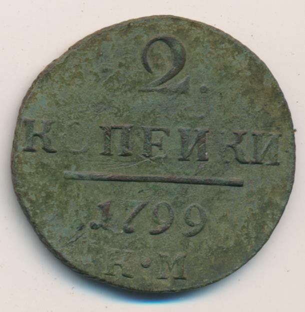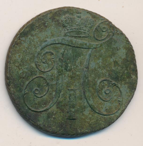 Лицевая сторона — вензель Павла I под короной, оборотная — номинал (2 копейки) и дата. Нормативный вес — 20,48 грамма, гурт — шнур.