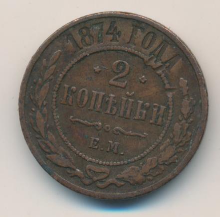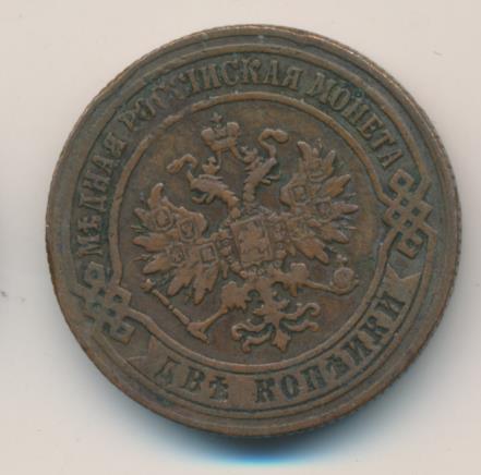 Лицевая сторона — двуглавый орел, надпись МЕДНАЯ РОССIЙСКАЯ МОНЕТА и обозначение номинала (две копейки); оборотная — обозначение номинала (2 копейки) в бусовом ободке и дата. Нормативный вес — 6,55 грамма, гурт рубчатый.