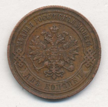 Лицевая сторона — двуглавый орел, надпись МЕДНАЯ РОССIЙСКАЯ МОНЕТА и обозначение номинала (две копейки); оборотная — обозначение номинала (2 копейки) в бусовом ободке и дата. Нормативный вес — 6,55 грамма, гурт рубчатый.