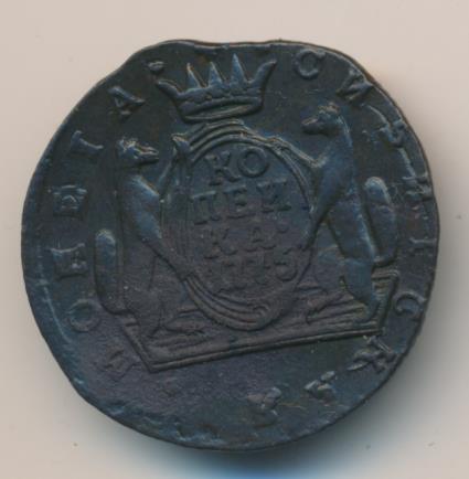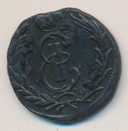 Лицевая сторона - два соболя поддерживают щит с обозначением номинала (копейка) под короной, надпись «СИБИРСКАЯ МОНЕТА». Оборотная — вензель Екатерины II в венке из пальмовой и лавровой ветвей. Гурт — шнур, вес — 6,55 грамма.