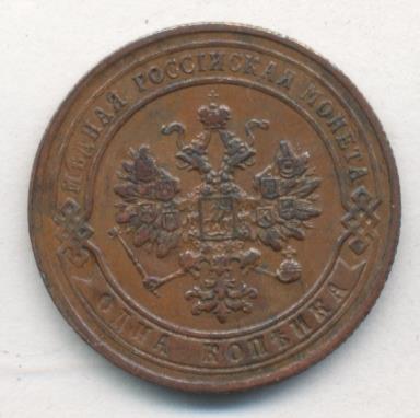 Лицевая сторона — двуглавый орел, надпись МЕДНАЯ РОССIЙСКАЯ МОНЕТА и обозначение номинала (одна копейка); оборотная — обозначение номинала (1 копейка) в бусовом ободке и дата. Нормативный вес — 3,28 грамма, гурт рубчатый.