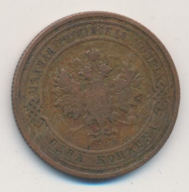 Лицевая сторона — двуглавый орел, надпись МЕДНАЯ РОССIЙСКАЯ МОНЕТА и обозначение номинала (одна копейка); оборотная — обозначение номинала (1 копейка) в бусовом ободке и дата. Нормативный вес — 3,28 грамма, гурт рубчатый.