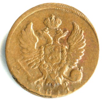Манифестом от 29 августа 1810 года для медных монет всех номиналов стопа увеличивается в полтора раза и становится 24 рубля из пуда. В следующие два десятилетия по этой норме чеканятся только двухкопеечники, копейки и деньги, призванные ликвидировать нехватку разменной монеты. В оформлении монет вместо кольцевых ободков на оборотной стороне размещается венок из лавровой и дубовой ветвей, как на серебряной монете.