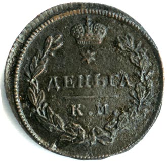 Манифестом от 29 августа 1810 года для медных монет всех номиналов стопа увеличивается в полтора раза и становится 24 рубля из пуда. В следующие два десятилетия по этой норме чеканятся только двухкопеечники, копейки и деньги, призванные ликвидировать нехватку разменной монеты. В оформлении монет вместо кольцевых ободков на оборотной стороне размещается венок из лавровой и дубовой ветвей, как на серебряной монете.