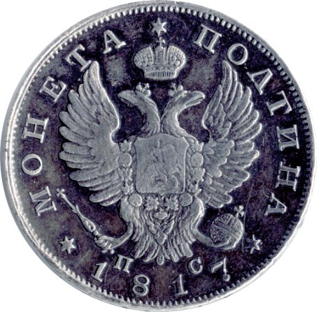 Манифест от 20 июня 1810 года «О новом устройстве монетной системы» устанавливает серебряный рубль законной мерой всех расчетов. Банковые монеты — рубли и полтины — изменяют свой внешний вид. Броская надпись внутри венка на оборотной стороне указывает содержание чистого серебра в монете, а номинал занимает скромное место вокруг орла. Гуртовая надпись сообщает о пробе и лигатурном весе. Выделяют два типа орла.