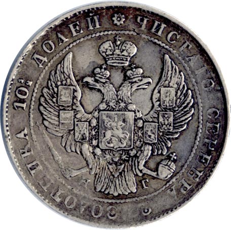 В январе 1830 года Николай I дает министру финансов Е. Ф. Канкрину устное указание «о сделании на золотых и серебряных монетах орла как на платиновых». На новом гербе крылья орла подняты, на них размещены шесть местных гербов — казанский, астраханский, сибирский, польский, херсонесский и финляндский. На груди орла — московский герб, на головах — короны. С 1832 года заодно с орлом изменяются и композиции обеих сторон монеты: на лицевой стороне содержание чистого серебра в монете теперь обозначает круговая надпись, слово МОНЕТА на оборотной подчеркивает нарицательную стоимость, отличая полновесное денежное средство от рубля ассигнациями (нужно помнить, что доставшаяся Николаю в наследство от трех прежних правлений масса обесцененных бумажных денег является острой экономической проблемой. Правительство Николая удерживает объем ассигнаций строго на одном уровне, не прибегая к дополнительным эмиссиям; курс рубля ассигнациями колеблется вокруг 35 копеек).